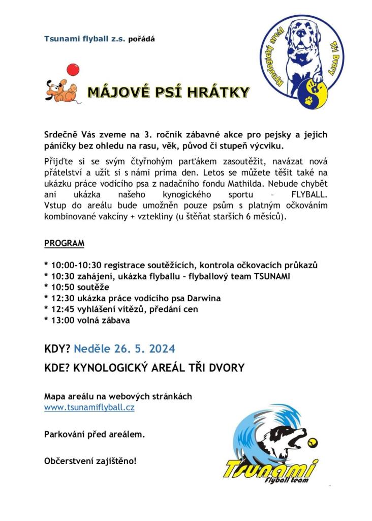 26.5.2024 od 10.00 hodin v kynologickém areálu ve Třech Dvorech.