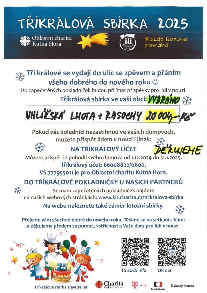 Koledníci získali na pomoc potřebným 20 004,-Kč. Velké díky všem!